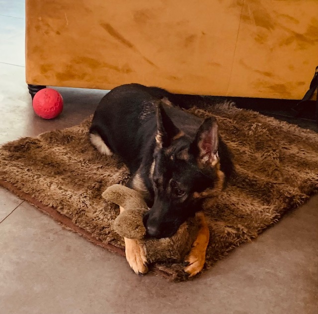 Och wat een onrust…ze bleef maar op en neer lopen met haar bal in haar bek. Ondertussen op vliegen jacht, ze moest bezig zijn van zichzelf.