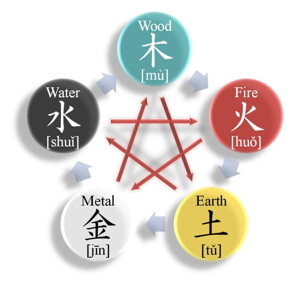NEI werkt op basis van de vijf elementen: vuur ~ aarde ~ metaal ~ water en hout:
