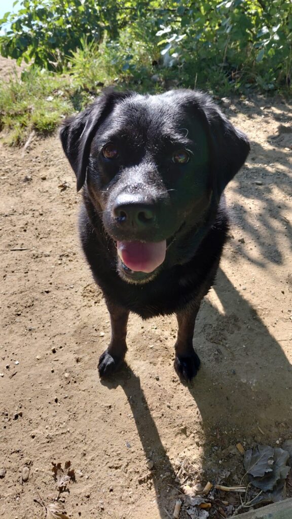 ‘Kijk hoe blij!’ schrijft haar mens bij het fotootje van haar hond.